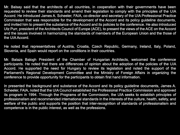 INTERNATIONAL CONFERENCE ON THE PROFESSIONAL ARCHITECTURAL PRACTICE