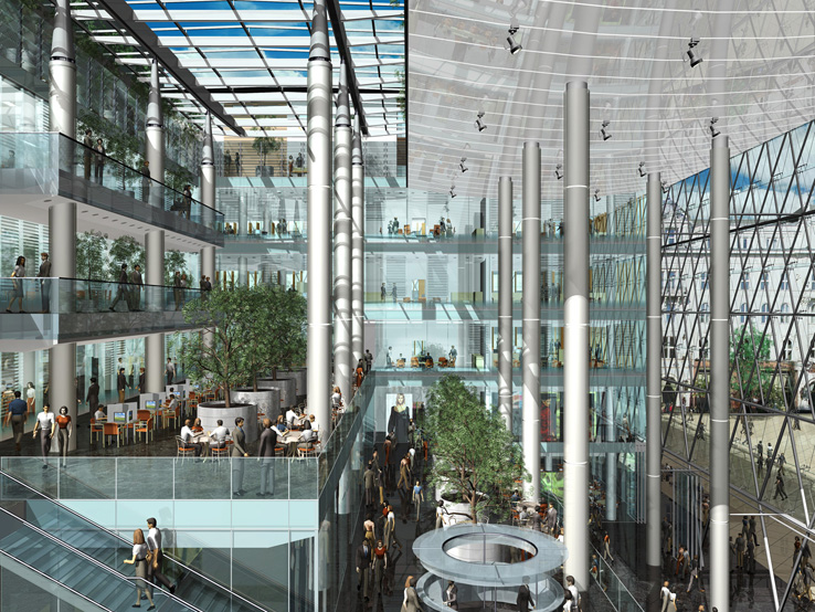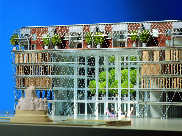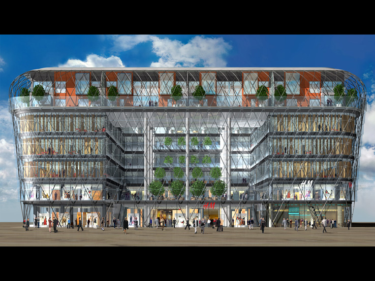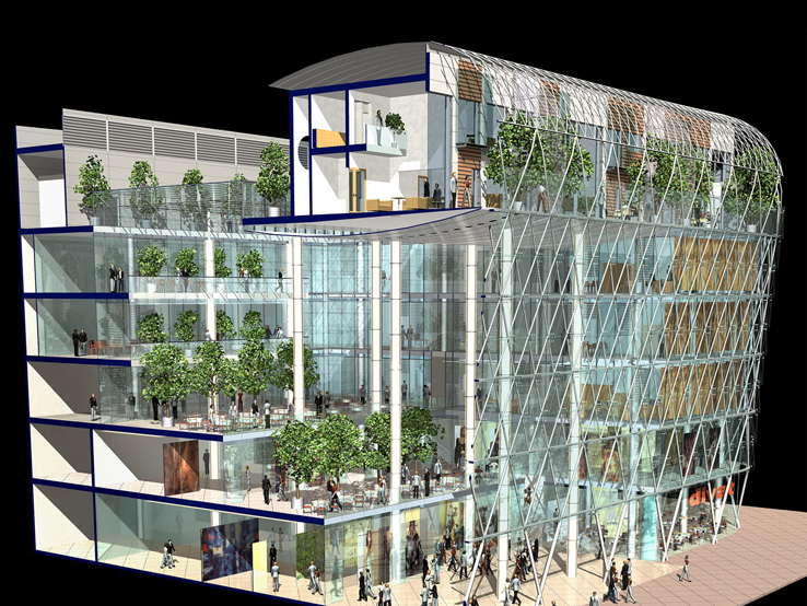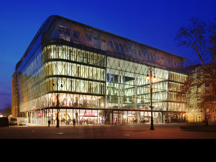 A BELVÁROS KÖZPONTI TERÉNEK MEG- HATÁROZÓ ÚJ ÉPÜLETE. AZ ÉPÜLET FÖLD- ALATTI SZINTJEIN GÉPJÁRMŰTÁROLÓK, AZ ELSŐ PINCESZINTEN, A FÖLDSZINTEN ÉS AZ ELSŐ EMELETEN ÜZLETEK, A MÁSODIK, HARMADIK, NEGYEDIK EMELETEN IRODÁK, AZ ÖTÖDIK, HATODIK EMELETEN 8 DARAB DUPLEX ÖRÖKLAKÁS, AZ ÉPÜLET KÖZÉP- PONTJÁBAN NAGY MÉRETŰ ÜVEGFEDÉSŰ KÖZHASZNÁLATÚ ÁTRIUM HELYEZKEDIK EL.